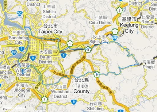 家->台北橋->成功橋->汐止->汐平路->菁桐->深坑->景美舊橋->家